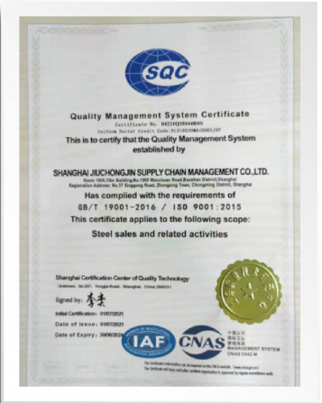 | 证书 | 证书 | GB/T 19001-2016,ISO 9001:2015 |