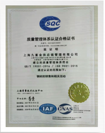 上海九重金供应链管理有限公司成立于2016年,是上海钢银电子商务股份有限公司(以下简称“钢银电商”)控股子公司,是钢银电商寻求产业链纵深发展,探索打造的专业化供应链平台。深研汽车、机电等行业,重点经营酸洗、冷轧、镀锌、硅钢等钢材产品;基于产业发展趋势,着力发展的跨行业信息化管理系统;立足华东,覆盖华中、华北和华南等区域,并提供小批量进出口服务。聚焦产业链整合,致力于为客户提供高效优质的原材料解决方案,为客户创造价值。